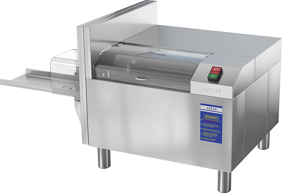 Хлеборезка ATESY ЯНЫЧАР АХМ-300А используется на предприятиях общественного питания для нарезки хлеба в больших количествах. Оборудование оснащено запатентованным серповидным ножом с режущей кромкой волнообразной формы со специальной заточкой. Такой нож нарезает ровными ломтиками не ломая и не кроша, как суточный, так и свежий хлеб. Корпус и защитная шторка выполнены из нержавеющей стали, нож - из особой закаленной нержавеющей стали.