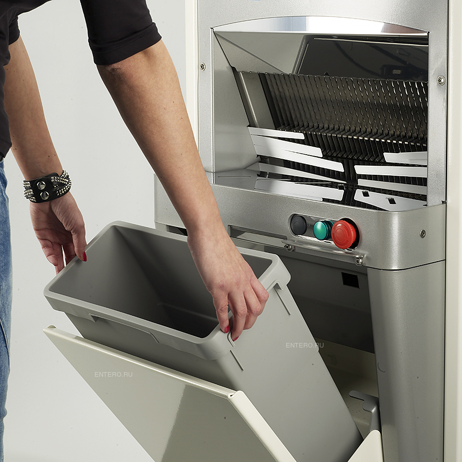 Автоматическая хлеборезка Jac Swift 450M предназначается для непрерывного и серийного нарезания хлеба на предприятиях общественного питания, торговли и производствах. Модель оснащена микронизированной системой смазки для ножей, позволяющей резать хлеб с высоким содержанием ржи и липкого мякиша. Встроенная система автоматического контроля нарезки хлеба Intelligent Slicing Control позволяет равномерно и качественно нарезать плотный, хрустящий, либо воздушный хлеб. Крошки собираются в съёмный бак. Фронтальная загрузочная зона. В зоне переворачивания буханок находятся фотоэлементы, при фиксации ими руки оператора или постороннего предмета срабатывает защитный механизм и работа хлеборезки останавливается. Материал ножа - тефлон.