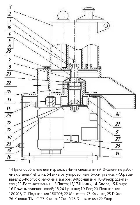 Овощерезка БЕЛТОРГМАШ МПО-1-03 используется на предприятиях общественного питания и торговли для нарезки сырых и вареных продуктов (картофеля, свеклы, моркови, лука, репы, брюквы, огурцов, томатов и т.д.) на частицы различной геометрической формы, тонкого измельчения картофеля, моркови, а также для шинковки капусты. Модель оснащена приводом и приспособлением для резки. Рабочая камера объединена с несущим корпусом, на котором крепятся все основные узлы машины.