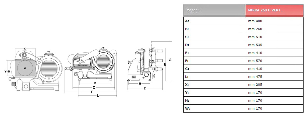 Слайсер Sirman MIRRA 250 VERT предназначен для нарезки мяса, сыра, колбасных изделий и других продуктов питания на ровные и равные ломтики на предприятиях общественного питания и торговли. Модель оснащена проветриваемым двигателем и скользящими салазками.