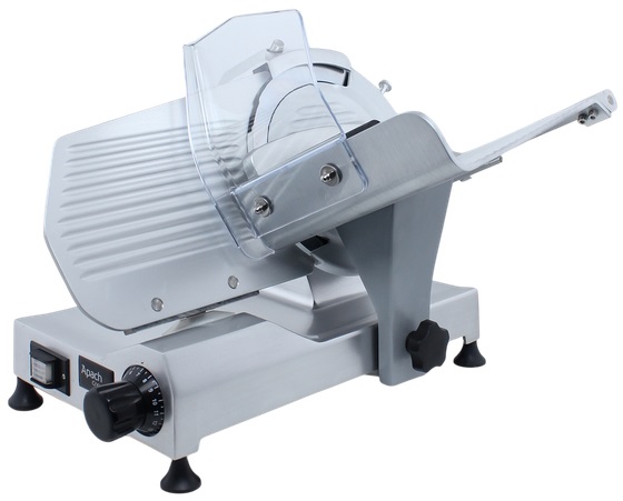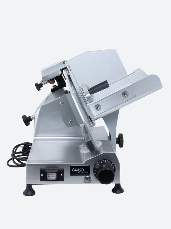 Слайсер Apach Cook Line ASL250 предназначен для нарезки различных продуктов на предприятиях общественного питания и торговли. Модель оснащена вентилируемым мотором и встроенным затачивающим устройством. Корпус выполнен из литого анодированного алюминиевого сплава, нож - из кованой углеродистой стали 100Cr6.