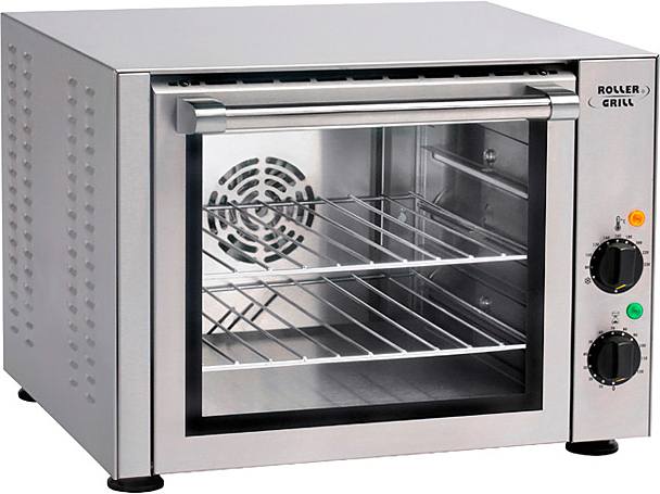 Конвекционная печь Roller Grill FC 280 предназначена для выпечки кондитерских и хлебобулочных изделий, приготовления свежих и замороженных гастрономических заготовок на предприятиях общественного питания и торговли. Модель оснащена 2 поворотными тумблерами для регулирования температуры внутри камеры, дверцей с двойным стеклом и таймером на 120 минут. Корпус и внутренняя камера выполнены из нержавеющей стали.