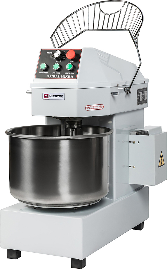 Спиральный тестомес Miratek PX-20 используется в пекарнях, кондитерских, на предприятиях общественного питания и торговли для замешивания теста с различной основой и консистенцией для выпечки большого ассортимента хлебобулочной продукции из пшеничного, ржаного и ржано-пшеничного теста.