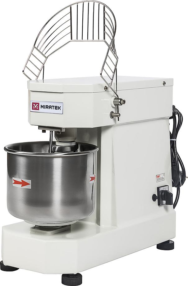 Спиральный тестомес Miratek PR-5 используется в пекарнях, кондитерских, на предприятиях общественного питания и торговли для замешивания теста с различной основой и консистенцией для выпечки большого ассортимента хлебобулочной продукции из пшеничного, ржаного и ржано-пшеничного теста.