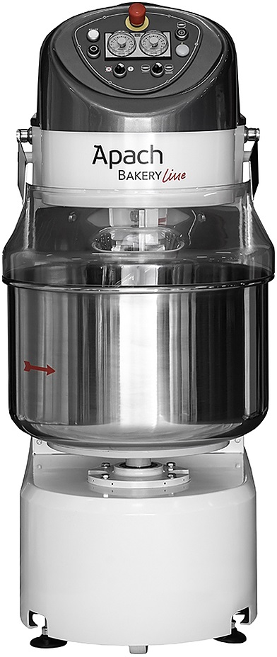 Спиральный тестомес Apach Bakery Line V-R 160 используется на предприятиях общественного питания, торговли и пищевых производствах для замеса различных видов теста: пшеничного, ржано-пшеничного, ржаного и теста для кондитерских изделий. Модель оборудована двойной трансмиссией. Материал дежи, спирали и центрального отсекателя - нержавеющая сталь.