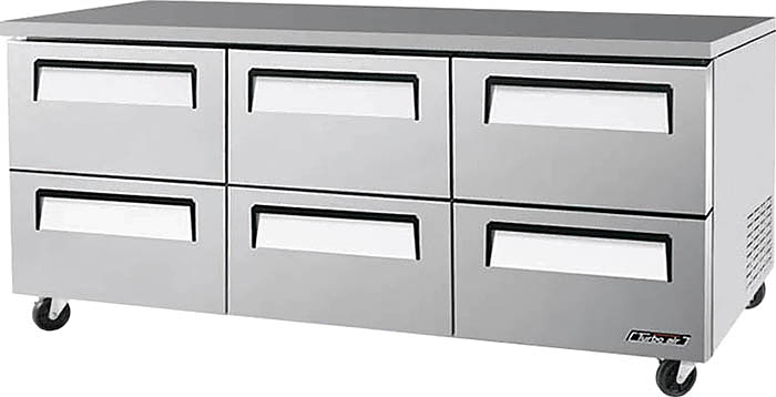 Холодильный стол Turbo air CMUR-72-2D-6 используется на предприятиях общественного питания, торговли и пищевых производствах для обработки, охлаждения и кратковременного хранения продуктов, а также для раскатки теста. Стол оснащен динамической системой охлаждения и аналоговым управлением. Материал корпуса - нержавеющая сталь (пожаробезопасные стенки 60 мм), материал пола - нержавеющая сталь с алюминиевыми вставками, материал направляющих - нержавеющая сталь, уплотнения выполнены из АБС-пластика.