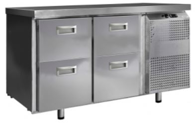 Холодильный стол Finist СХС-700-0/4 используется на предприятиях общественного питания, торговли и пищевых производствах для хранения и обработки полуфабрикатов из мяса и рыбы, заготовок для салата, охлажденных напитков и прочих пищевых продуктов. Управление при помощи кнопочной панели управления, оснащенной цифровым дисплеем. 4 выдвижных ящика, агрегатный отсек располагается сбоку. Стол установлен на ножки с подпятниками. Материал корпуса - нержавеющая сталь.