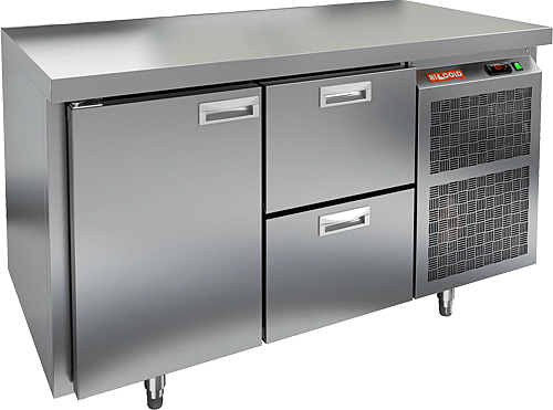 Холодильный стол HICOLD GN 12/TN O используется на предприятиях общественного питания, торговли и пищевых производствах для обработки различных ингредиентов и хранения продуктов, напитков и кухонных принадлежностей. Модель оснащена электронной панелью управления, динамической системой охлаждения, автоматической оттайкой, доводчиком дверей с фиксатором, глухой дверцей, ящиками и регулируемыми ножками. Материал корпуса и столешницы - высококачественная нержавеющая сталь.