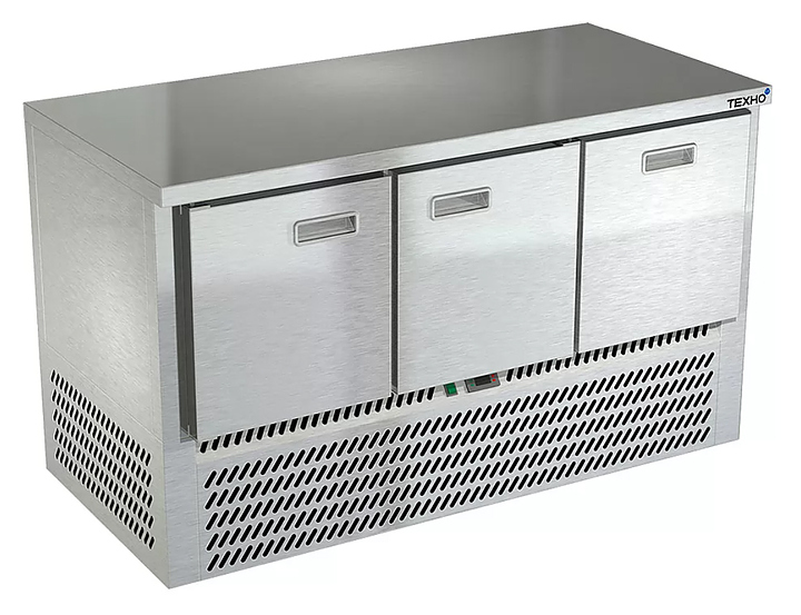 Холодильный стол Техно-ТТ СПН/О-122/21-1407 предназначается для раскатки теста, обработки, охлаждения и кратковременного хранения продуктов и напитков на предприятиях общественного питания, торговли и пищевых производствах. Секции оснащены направляющими и решетчатыми полками, двери и ящики - доводчиками. Материал корпуса и столешницы - нержавеющая сталь AISI 430, материал задней панели и дна - оцинкованная сталь.