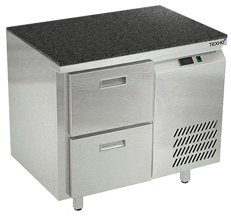 Холодильный стол Техно-ТТ СПБ/О-323/02-907 предназначается для раскатки теста, обработки, охлаждения и кратковременного хранения продуктов и напитков на предприятиях общественного питания, торговли и пищевых производствах. Секции оснащены направляющими и ящиками с доводчиками. Материал корпуса - нержавеющая сталь AISI 430, материал столешницы - гранит (толщина 20 мм), материал задней панели и дна - оцинкованная сталь.