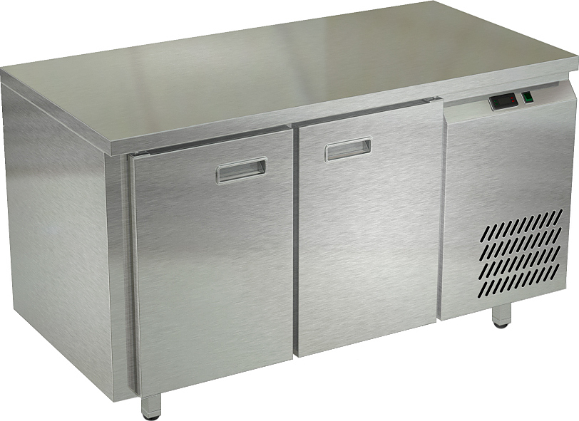 Холодильный стол Техно-ТТ СПБ/Т-121/20-1306 предназначается для раскатки теста, обработки продуктов и ингредиентов, заморозки и хранения продукции, а также для размещения теплового оборудования на предприятиях общественного питания, торговли и пищевых производствах. Двери оснащены доводчиками. Материал корпуса и столешницы - нержавеющая сталь AISI 430, материал дна и задней панели - оцинкованная сталь.