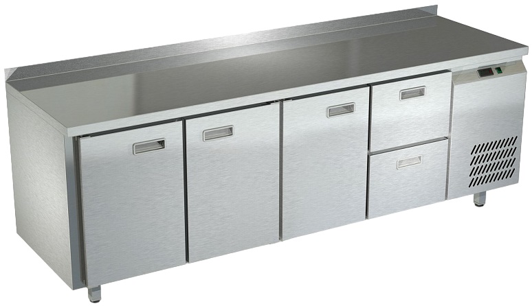 Холодильный стол Техно-ТТ СПБ/Т-222/32-2207 предназначается для раскатки теста, обработки продуктов и ингредиентов, заморозки и хранения продукции, а также для размещения теплового оборудования на предприятиях общественного питания, торговли и пищевых производствах. Двери оснащены доводчиками. Материал корпуса и столешницы - нержавеющая сталь AISI 430, материал дна и задней панели - оцинкованная сталь.