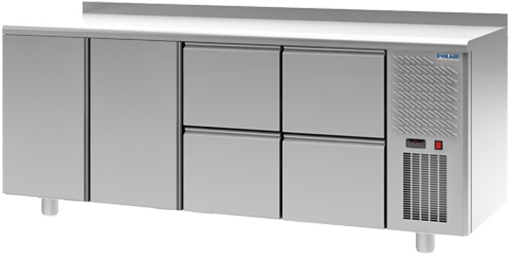 Холодильный стол POLAIR TM4-0022-G серии Grande используется на предприятиях общественного питания, торговли и пищевых производствах для хранения продуктов и обработки ингредиентов. Модель оснащена автоматической оттайкой, динамическим охлаждением, терморегулятором, двухъярусным агрегатом, уплотнитель с магнитными вставками и регулируемыми ножками. Материал изделия - высококачественная нержавеющая сталь, гарантирующая механическую прочность, термоизоляцию, герметичность и долговечность стола.
