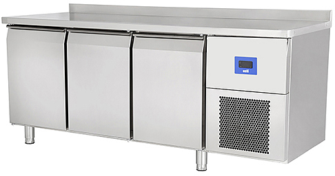 Холодильный стол OZTI 370.00 NMV HC E4 используется для раскатки теста, обработки ингредиентов и охлаждения продуктов на предприятиях общественного питания, торговли и пищевых производствах. Модель оснащена цифровой панелью управления, конденсатором с проволочным каркасом, дверцами с магнитными уплотнителями и регулируемыми ножками. Материал корпуса - высококачественная нержавеющая сталь AISI 304, материал теплоизоляции - полиуретан.