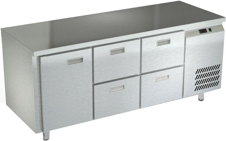 Холодильный стол Техно-ТТ СПБ/О-122/14-1807 предназначен для раскатки теста, обработки, охлаждения и кратковременного хранения продуктов и напитков на предприятиях общественного питания и торговли. Модель оснащена компрессором АСС (Италия), секция - направляющими и сетчатой полкой, дверь и ящики - доводчиками. Корпус выполнен из нержавеющей стали, задняя стенка - из оцинкованной стали.