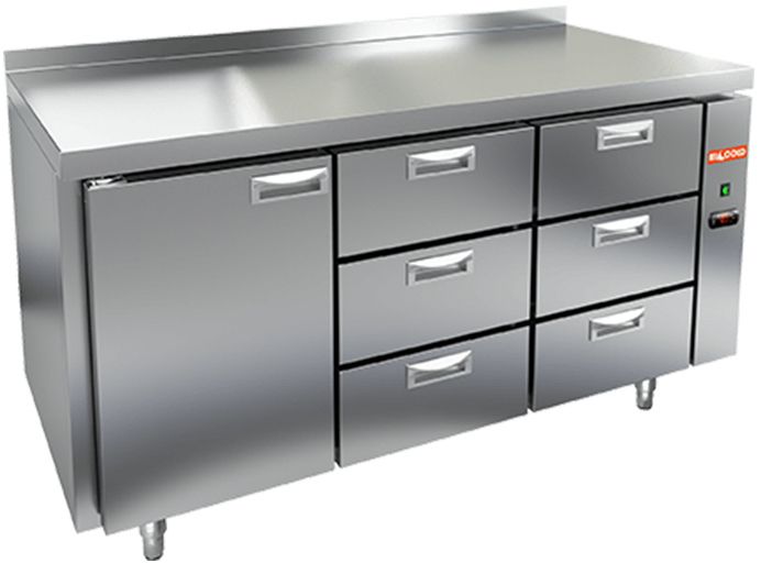 Холодильный стол HICOLD SN 133/TN состоит из рабочей поверхности, на которой можно раскатывать тесто и обрабатывать ингредиенты для приготовления блюд, и камеры, предназначенной для охлаждения и кратковременного хранения скоропортящихся продуктов и напитков. Оборудование подходит для использования на предприятиях общественного питания.