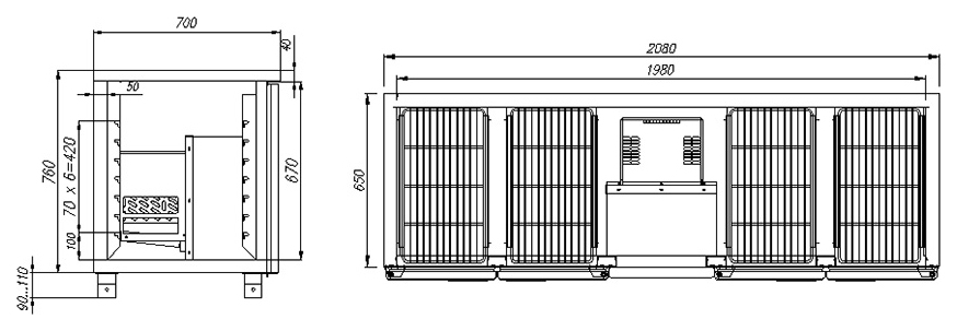 Стол холодильный Полюс T70 M4-1-G 9006 (4GNG/NT 1111)