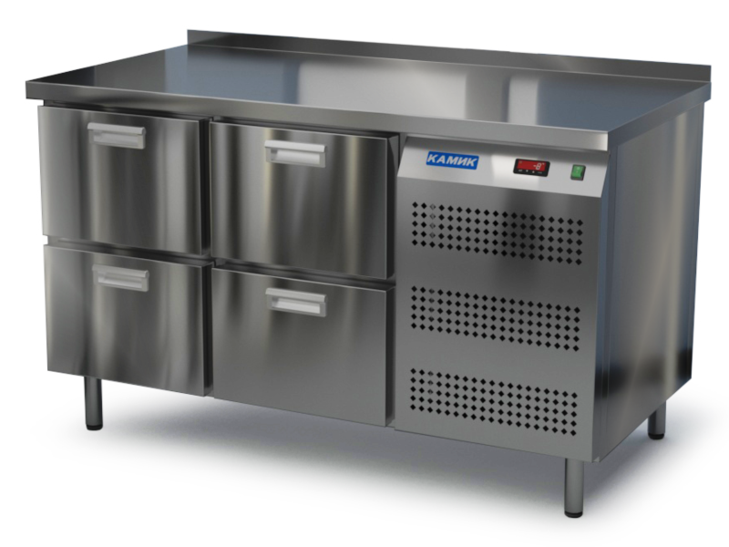 Холодильный стол КАМИК СО-Т-04146 используется на предприятиях общественного питания и торговли для охлаждения и хранения продуктов, напитков и готовых блюд, а также для установки теплового оборудования на него. Конструкция разделена на секции, каждая из которых оборудована сетчатой полкой и парой направляющих. Корпус выполнен из нержавеющей стали.