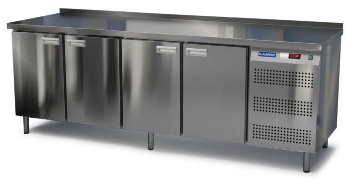 Холодильный стол КАМИК СО-44236 используется на предприятиях общественного питания и торговли для охлаждения и хранения продуктов, напитков и готовых блюд. Конструкция разделена на секции, каждая из которых оборудована сетчатой полкой и парой направляющих. Корпус выполнен из нержавеющей стали AISI 430 толщиной 1 мм, столешница - из нержавеющей стали AISI 304 толщиной 1,5 мм.