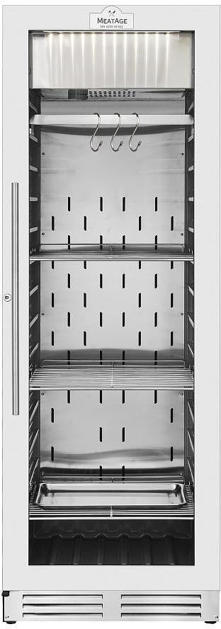 Шкаф для мяса MeatAge VI180 WT предназначен для охлаждения и вызревания мяса, ветчины и салями в частных домах, квартирах, отелях и офисах. Модель оснащена акустической сигнализацией и запираемой дверью. Корпус и комплектующие выполнены из нержавеющей стали AISI 304, дверца - из ударопрочного закаленного стекла.