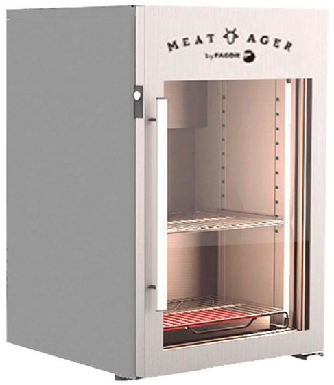 Шкаф Fagor FMA-900 используется для охлаждения, хранения и вызревания мяса, птицы, колбасы, рыбы, ветчины, сыра и салями на предприятиях общественного питания, торговли, пищевых производствах и в домашних условиях. Модель оснащена электронным управлением, цифровым дисплеем, сигнализацией при изменении температуры, УФ лампой, магнитным уплотнителем, светодиодным освещением, замком двери, съемными решетками, 2 передними регулируемыми ножками и 4 задними роликами. Материал корпуса - высококачественная нержавеющая сталь, материал внутренней отделки - высококачественная нержавеющая сталь AISI 304 толщиной 60 мм, материал двери - двойной стеклопакет.