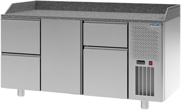 Холодильный стол для пиццы POLAIR TM3GNpizza201-G серии Grande используется на предприятиях общественного питания, торговли и пищевых производствах для раскатки теста, хранения и обработки ингредиентов перед приготовлением пиццы. Данная модель обеспечивает механическую прочность, термоизоляцию и герметичность. Материал внешнего и внутреннего корпуса, дверцы и ящиков - высококачественная нержавеющая сталь, материал столешницы и борта - натуральный гранит, материал теплоизоляции - пенополиуретан.