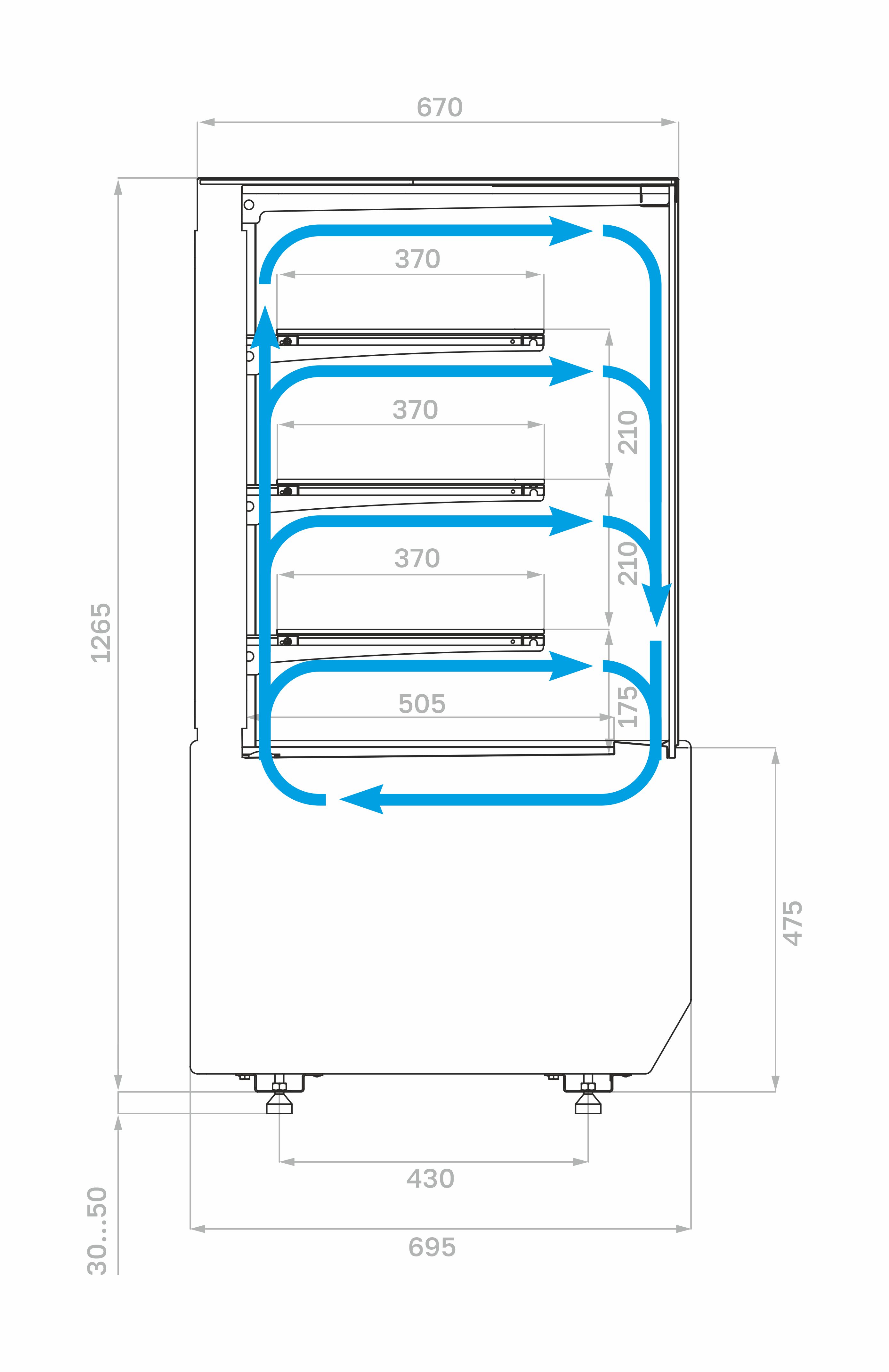 • Запрещается эксплуатация витрины при попадании на нее прямых солнечных лучей, воздушных потоков от кондиционеров, вентиляторов и обогревателей