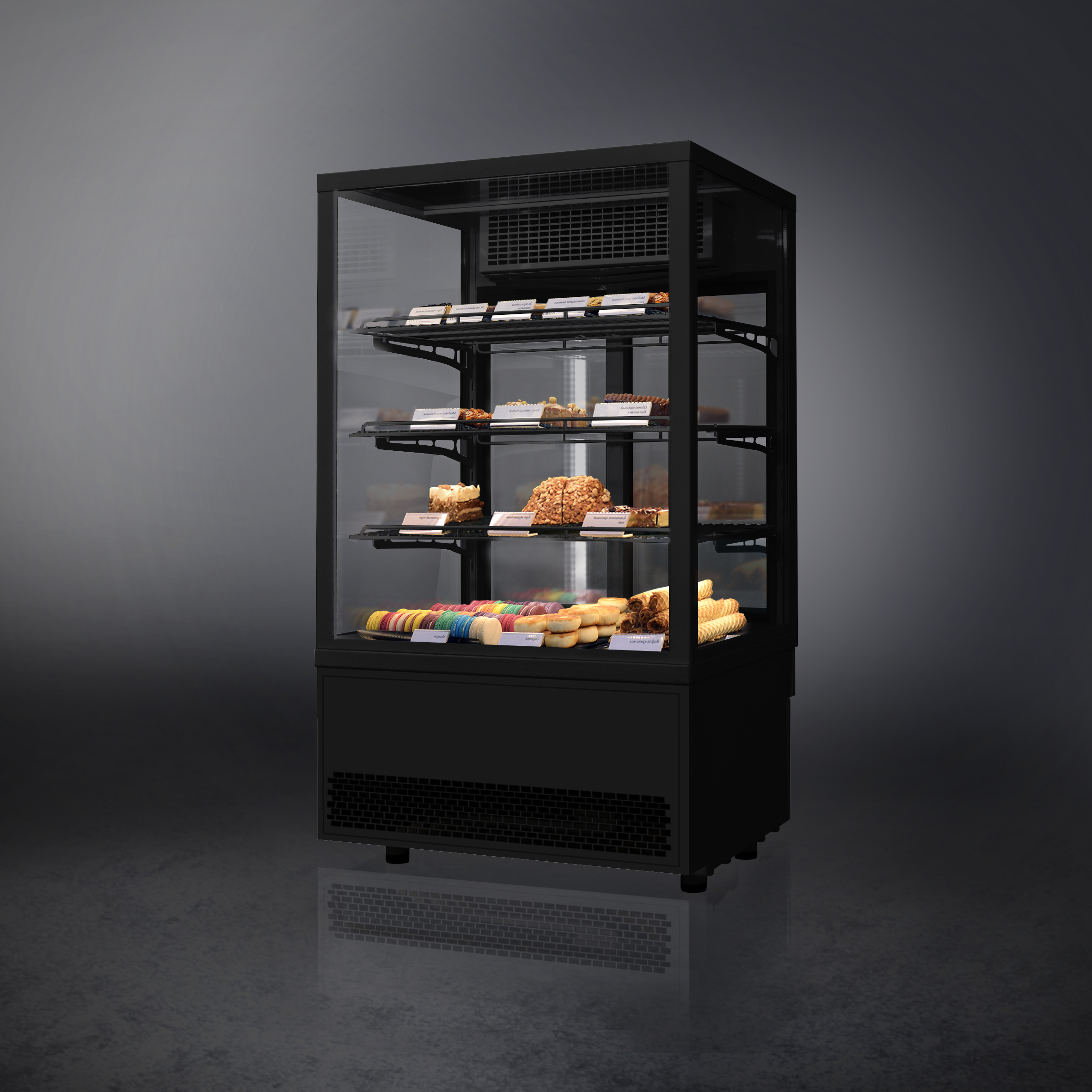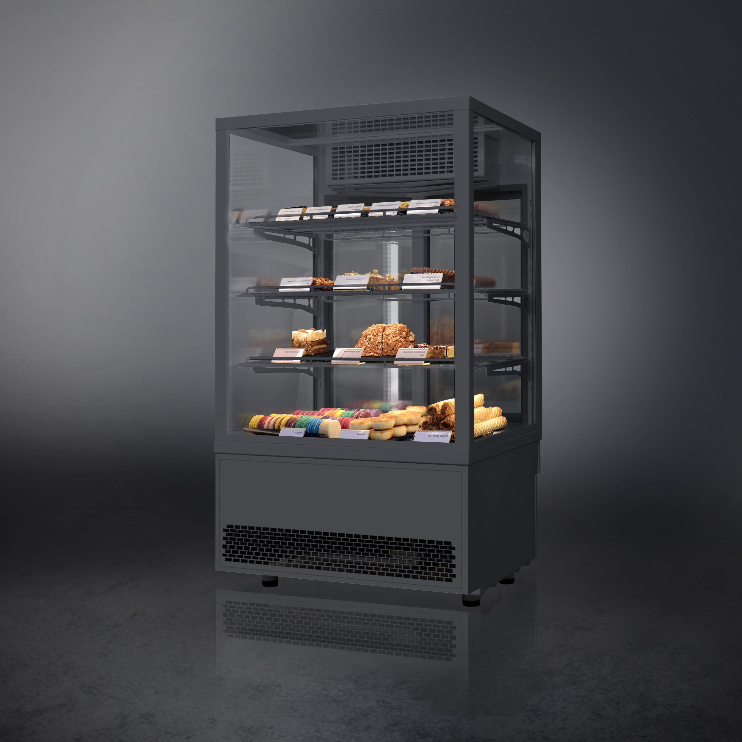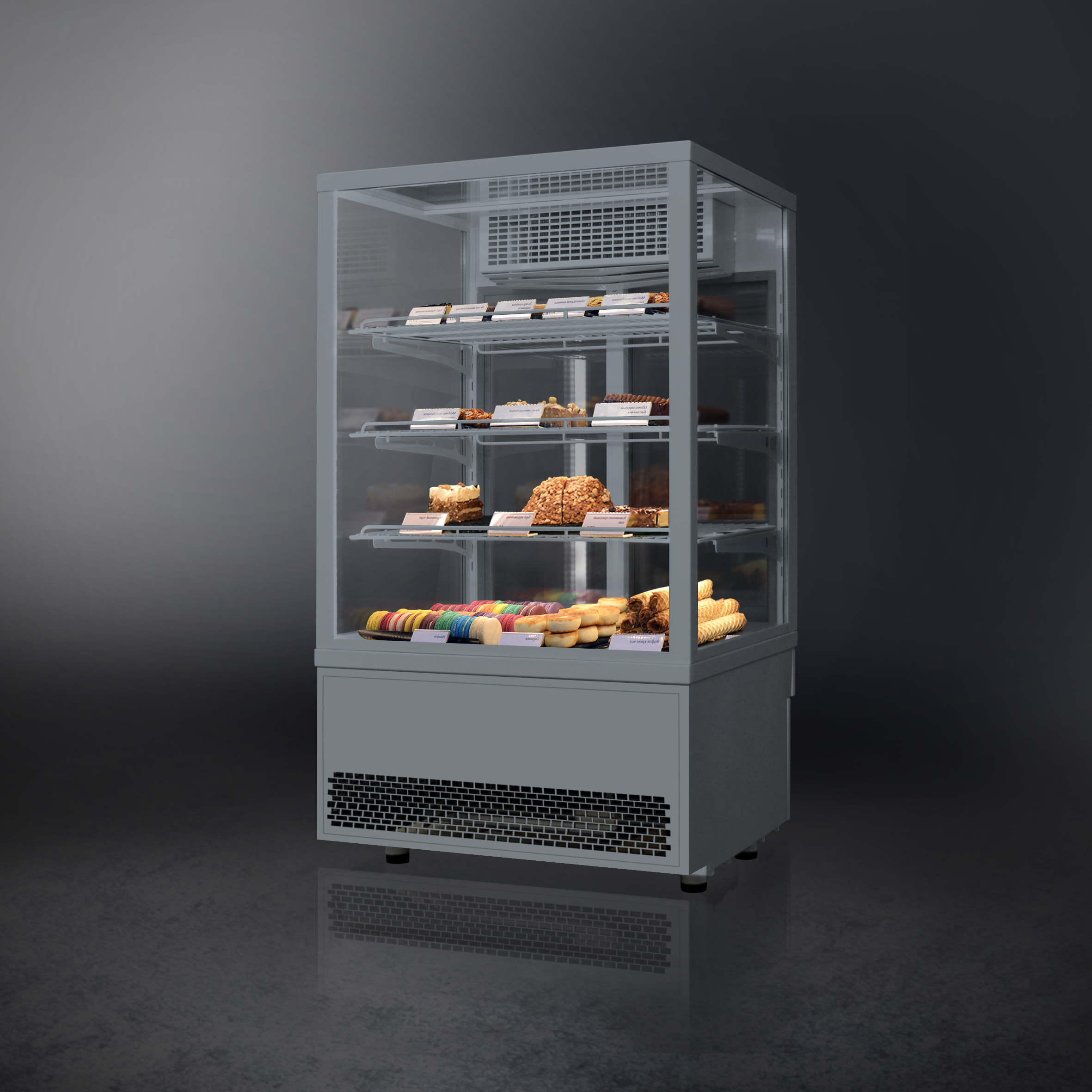 • Прозрачное остекление для оптимального обзора выкладки с 4 сторон