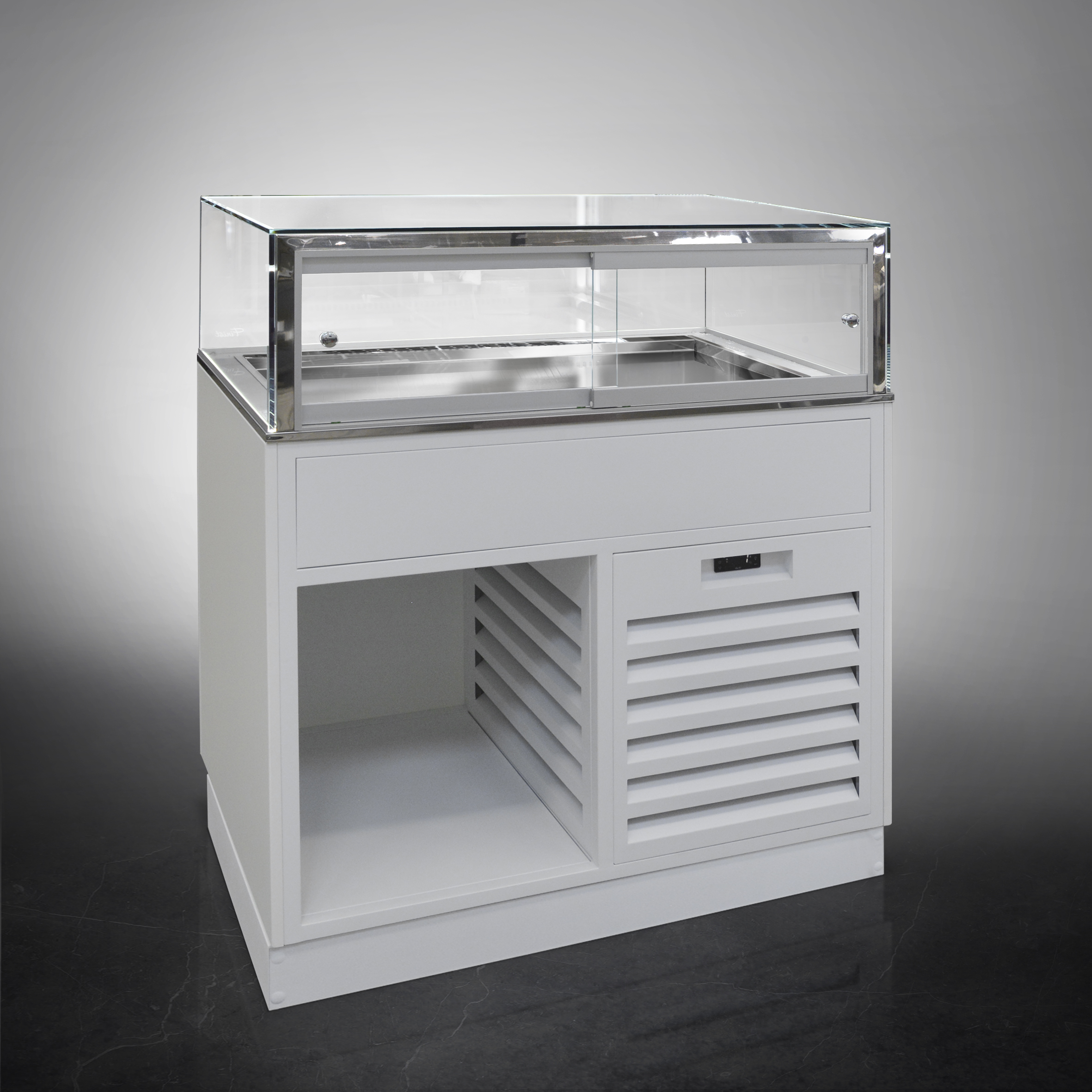 Холодильная витрина Finist GLASSIER LUX GL-15/55/3 используется для демонстрационной выкладки, охлаждения и хранения кондитерских и хлебобулочных изделий на предприятиях общественного питания и торговли. Модель оснащена микропроцессорным блоком, автоматической оттайкой, цоколем, светодиодной подсветкой и удобными дверцами купе. Материал фронтальных и боковых панелей облицовки - МДФ панели, материал купола - просветленное стекло, материал дна - высококачественная нержавеющая сталь.