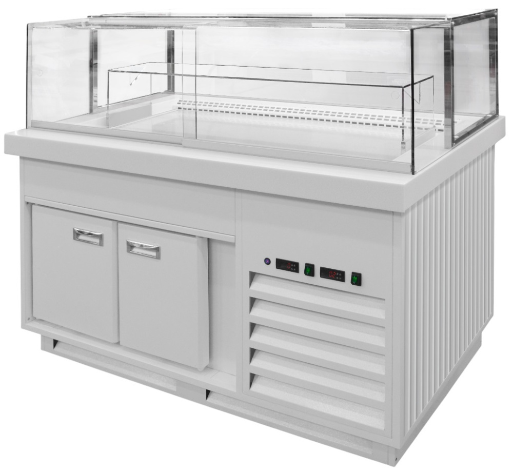 Витрина кондитерская Finist Maria Msv-18-9 используется для демонстрационной выкладки, охлаждения и хранения кондитерских и хлебобулочных изделий на предприятиях общественного питания и торговли. Модель оснащена микропроцессорным блоком, автоматической оттайкой, охлаждаемой камерой, выдвижной полкой, подсветкой и дверьми-купе. Материал фронтальных и боковых панелей облицовки - МДФ панели, материал купола и полок - просветленное стекло, материал зоны выкладки и столешницы - искусственный камень.