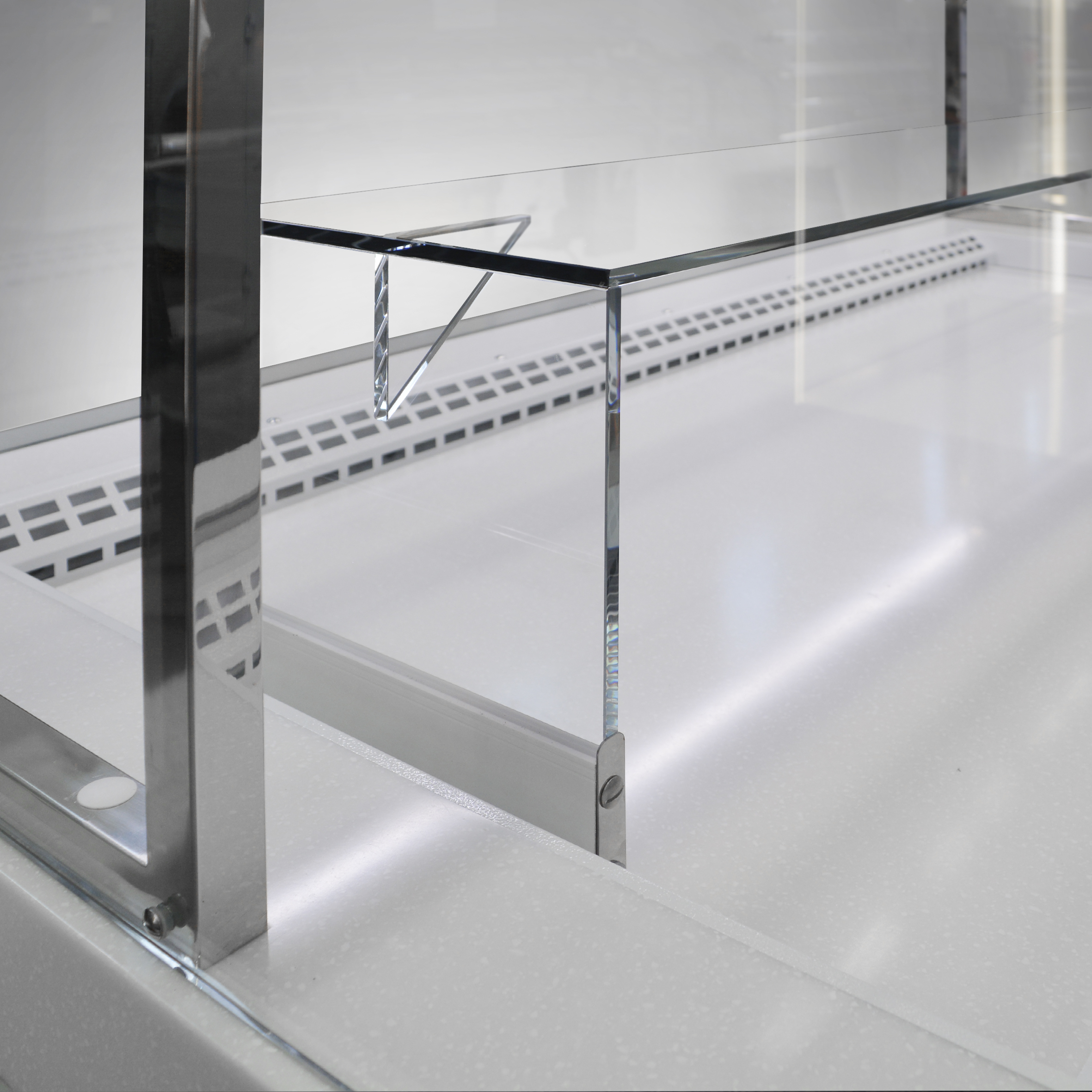 Витрина кондитерская Finist Maria Ms-20-9 используется для демонстрационной выкладки, охлаждения и хранения кондитерских и хлебобулочных изделий на предприятиях общественного питания и торговли. Модель оснащена микропроцессорным блоком, автоматической оттайкой, выдвижной полкой, подсветкой и дверьми-купе. Материал фронтальных и боковых панелей облицовки - МДФ панели, материал купола и полок - просветленное стекло, материал зоны выкладки и столешницы - искусственный камень.