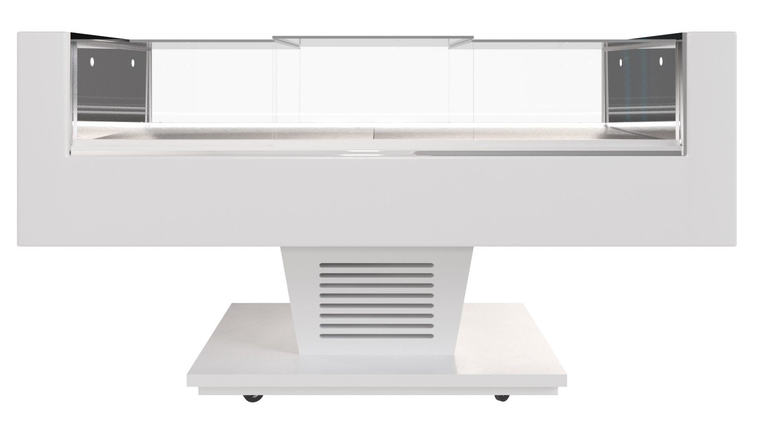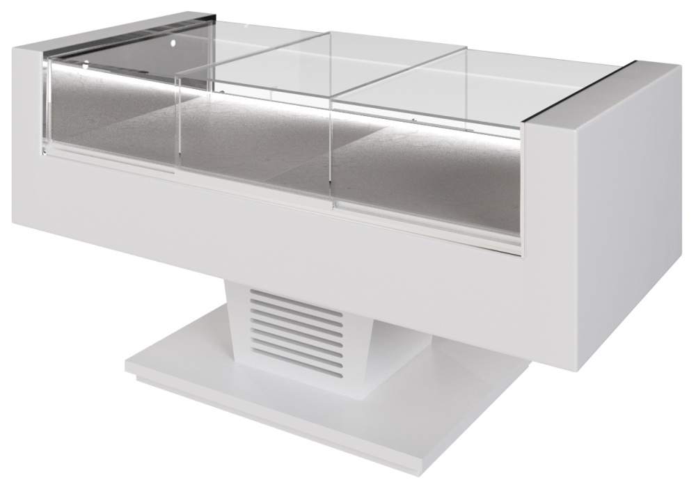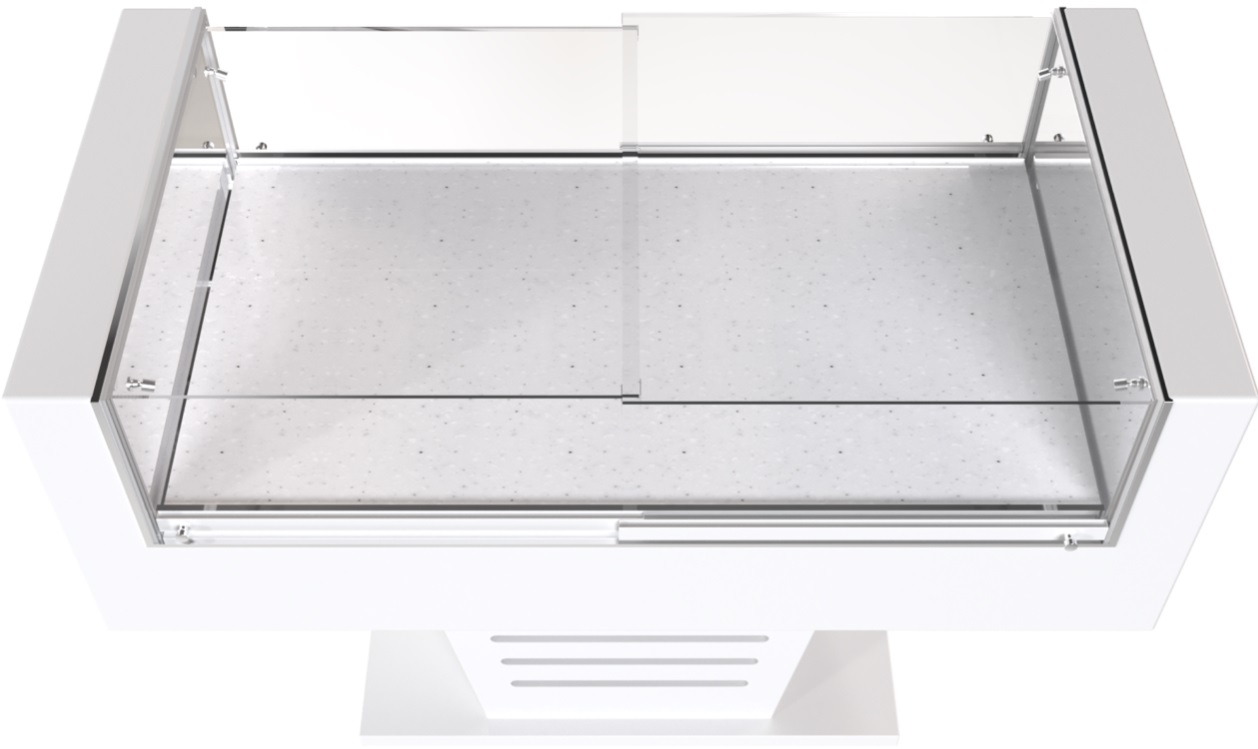 • Обзорность выкладки продуктов со всех сторон благодаря просветленному стеклу и отсутствию соединителей для стекла (стекла склеены между собой)