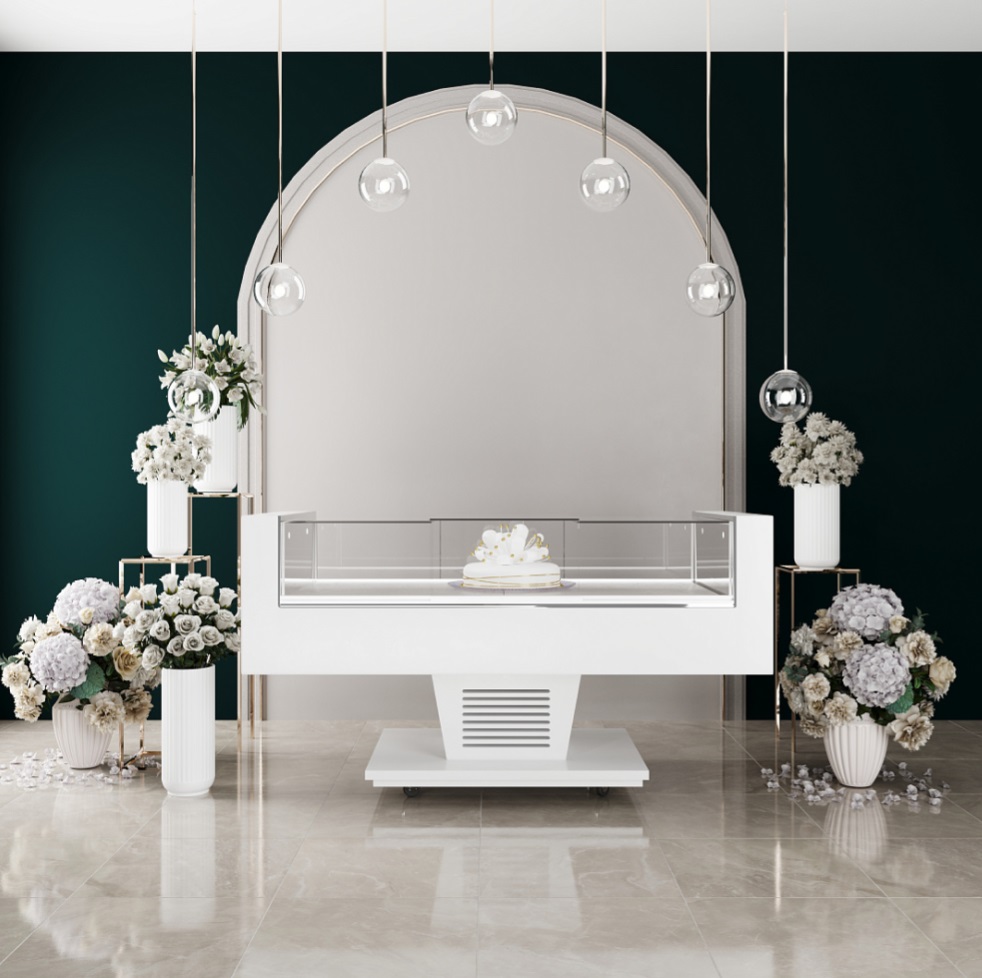 Витрина кондитерская Finist ROYAL R-16 используется для демонстрационной выкладки, охлаждения и хранения кондитерских и хлебобулочных изделий на предприятиях общественного питания и торговли. Модель оснащена микропроцессорным блоком, охлаждаемой столешницей, регулируемой подсветкой светодиодной , дверьми-купе и колесами с фиксаторами.. Материал фронтальных и боковых панелей облицовки - МДФ панели, материал столешницы - кварцевый агломерат.