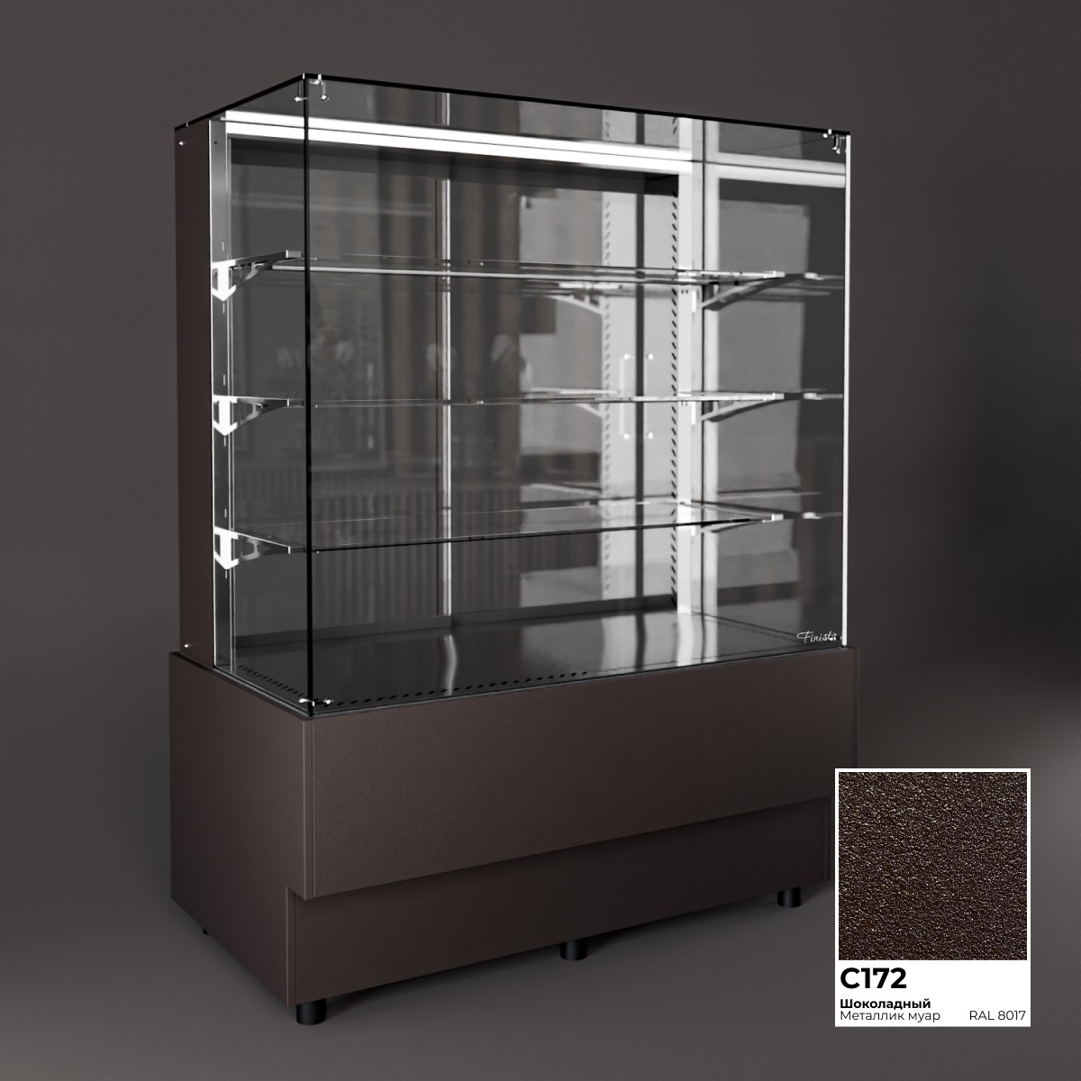 Холодильная витрина Finist AIR A-10-7-163 используется для демонстрационной выкладки, охлаждения и хранения кондитерских и хлебобулочных изделий на предприятиях общественного питания и торговли. Модель оснащена микропроцессорным блоком, автоматической оттайкой, светодиодной подсветкой каждой полки, 3 стеклянными полками и удобными дверцами купе. Материал цельнозаливного корпуса - окрашенная сталь, материал купола и полок - просветленное стекло, материал дна - зеркальная нержавеющая сталь.