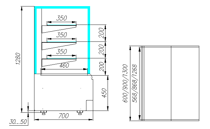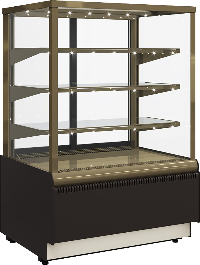 Кондитерская витрина Carboma KC70 VV 0,6-1 Standard используется на предприятиях общественного питания и торговли для демонстрации, охлаждения и кратковременного хранения тортов, пирожных и других кондитерских изделий. Модель оснащена 4-х сторонним остеклением, 3 охлаждаемыми стеклянными полками и регулируемыми ножками высотой от 30 до 50 мм. Корпус выполнен из окрашенной стали с ППУ-изоляцией, раздвижные задние створки на роликах - из стеклопакета.