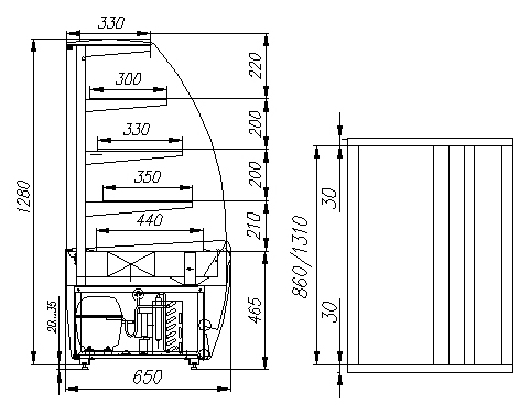 Витрина для шоколада Carboma K70 VH 0,9-1 (ВХСв - 0,9д) используется на предприятиях общественного питания и торговли для демонстрации, охлаждения и кратковременного хранения шоколада и десертов на его основе. Модель оснащена изогнутым фронтальным и прямыми боковыми стеклами, 3 охлаждаемыми фиксированными полками и регулируемыми ножками высотой от 20 до 35 мм. Основание и декоративные панели выполнены из стали, боковины - из пластика с пенополиуретановой теплоизоляцией, раздвижные задние створки - из оргстекла.
