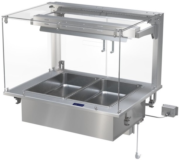 Тепловая витрина KAYMAN GUSTO ВТ-900-1240-02-К используется для демонстрационной выкладки и поддержания в горячем состоянии готовых блюд на предприятиях общественного питания, торговли и пищевых производствах. Модель оснащена терморегуляторами, 3 ТЭНами и внутренней ИК лампой. Материал каркаса - высококачественная нержавеющая сталь AISI 430, материал ванны - нержавеющей стали AISI 304, материал корпуса - закаленное стекло.