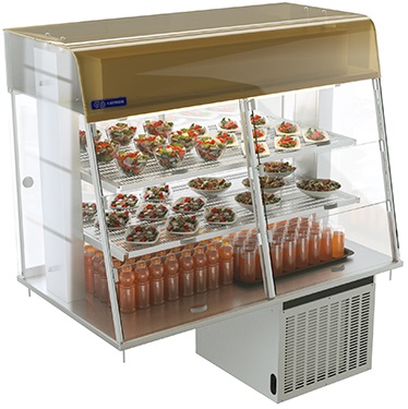 Холодильная витрина KAYMAN GUSTO ВХ-1200-1370-02 используется для демонстрационной выкладки, кратковременного хранения и раздачи салатов, кисломолочных продуктов и напитков на предприятиях общественного питания, торговли и пищевых производствах. Модель оснащена динамическим охлаждением, вентилятором, самозакрывающимися дверьми для покупателей и дверьми "купе" для персонала, внутренней подсветкой, 2 полками. Материал полок - высококачественная нержавеющая сталь, материал дверей "купе" - стеклопакет, материал самозакрывающихся дверей - оргстекло, материал боковых стенок и крыши - стекло толщиной 6 мм.