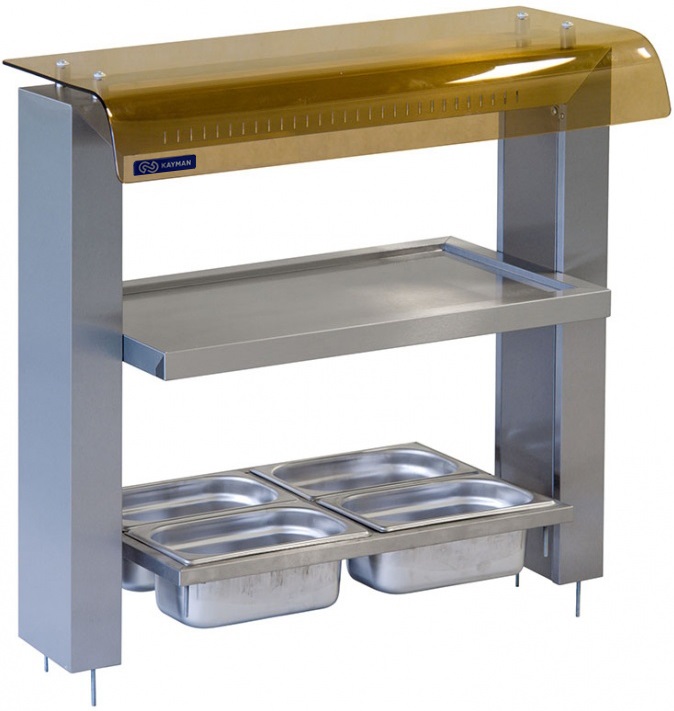 Стойка KAYMAN GUSTO СП-774-940-02 используется на предприятиях общественного питания, торговли и пищевых производствах для временного хранения и раздачи столовых приборов, хлеба, подносов и салфеток. Модель оснащена полкой, подсветкой и декоративным стеклом. Материал стойки - высококачественная нержавеющая сталь AISI 430.