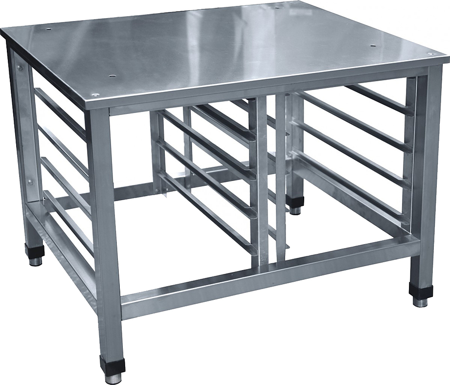 Подставка Hessen ПК 10 используется на предприятиях пищевой промышленности, общественного питания и торговли для установки на них пароконвектоматов. Подставка оснащена 10 направляющими для гастроемкостей GN 1/1. Изделие произведено с использованием программы Technology without Injuries - комплекса технологических решений, направленных на уменьшение травмоопасности для персонала, работающего на оборудовании. Каркас и столешница выполнены из нержавеющей стали, а для повышения прочности столешница укреплена ламинированным ДСП.