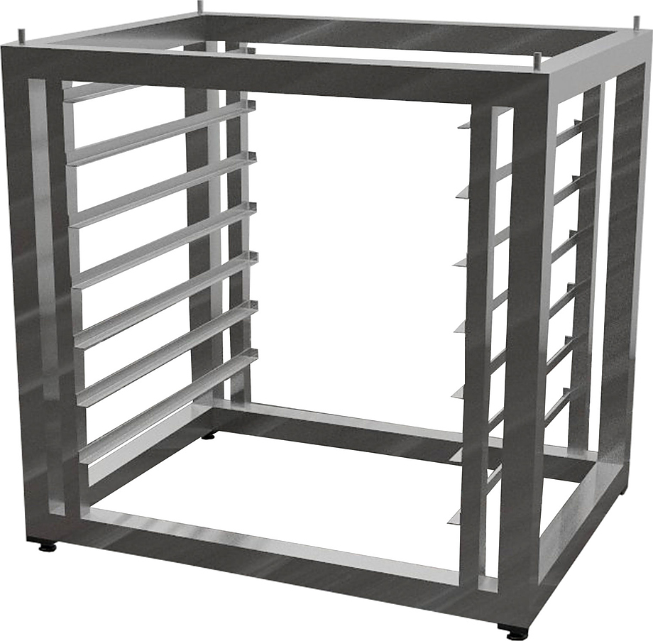 Подставка под пароконвектомат предназначена для размещения на ней пароконвектомата на предприятиях общественного питания. Модель оборудована осевыми ограничителями. Сварной каркас выполнен из нержавеющей стали AISI 430 толщиной 1,2 мм.