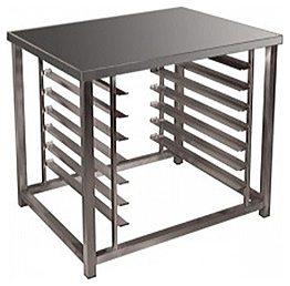 Подставка Rada ПКП-9/7-01Н используется совместно с пароконвектоматами. Модель оборудована 7 парами направляющих для гастроемкостей GN 1/1 или кондитерских листов (655х610). Модель изготовлена из нержавеющей стали AISI 304.