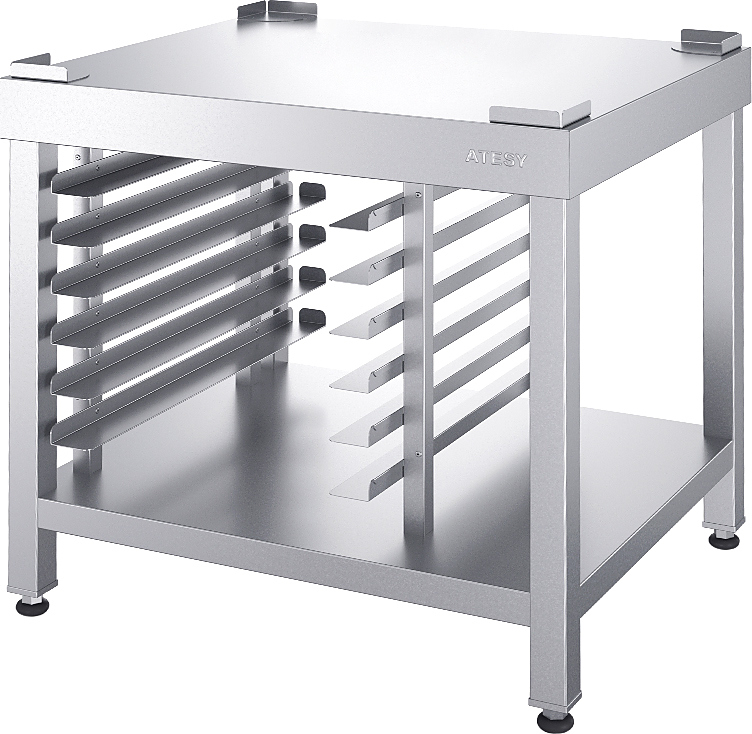 Подставка ATESY ПДТ-Л-840.600.700-02 серии Люкс используется на предприятиях общественного питания и торговли для установки пароконвектоматов Рубикон, а также другого технологического и кухонного оборудования. Материал столешницы, полки и направляющих - нержавеющая сталь AISI 304 (толщина 0.8 мм), материал стойки - нержавеющая труба 40х40 мм.
