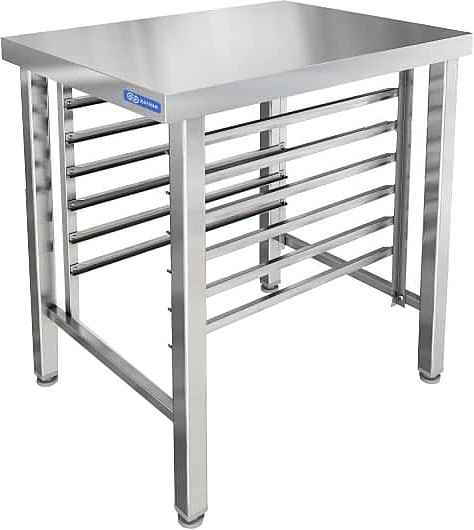 Подставка KAYMAN ПКУ-2 используется на предприятиях общественного питания и торговли совместно с пароконвектоматами серии COMPACT для хранения противней и гастроемкостей GN 1/1. Каркас выполнен из нержавеющей трубы AISI 430, столешница - из нержавеющей стали AISI 430.