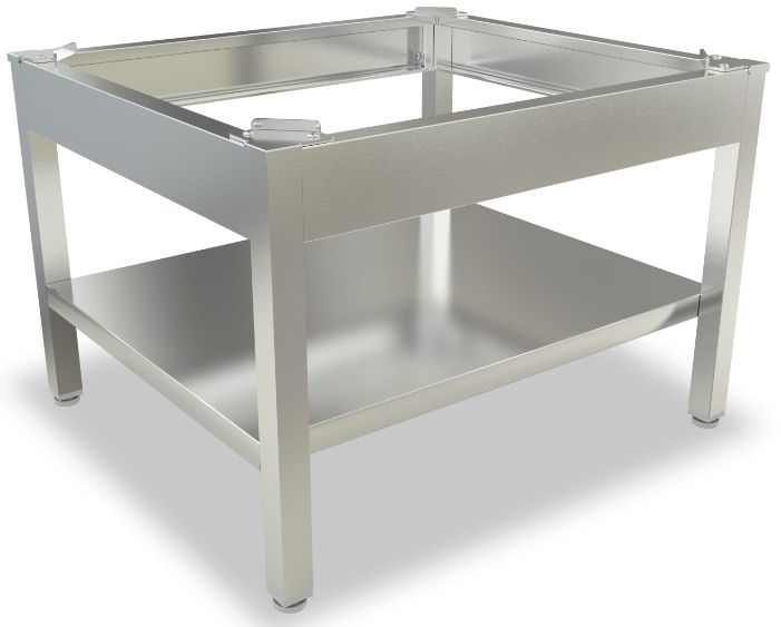 Подставка Техно-ТТ П7-12/О предназначена для установки на неё индукционной плиты ИП7-6/3,5/02С. Модель оснащена 1 сплошной полкой и регулируемыми по высоте ножками, что позволяет компенсировать неровности пола. Разборный каркас и полка выполнены из нержавеющей стали AISI 430 толщиной 1,2 мм.