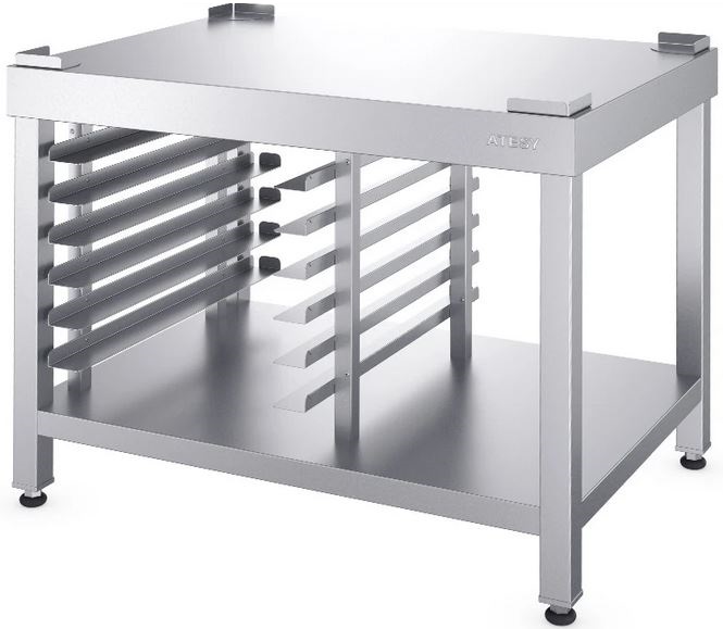 Подставка ATESY ПДТ-Л-900.800.700-02 серии Люкс используется на предприятиях общественного питания, торговли и пищевых производствах для установки технологического оборудования, размещения гастроемкостей и пекарских противней. Опорные ножки регулируются по высоте.