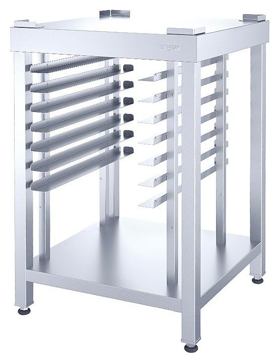 Подставка ATESY ПДТ-Л-600.700.960-02 серии Люкс используется на предприятиях общественного питания, торговли и пищевых производствах для установки технологического оборудования, размещения гастроемкостей и пекарских противней. Опорные ножки регулируются по высоте. Материал столешницы, полки и направляющих – нержавеющая сталь AISI 304, материал стоек - нержавеющая сталь AISI 201. Конструкция подставки разборная.