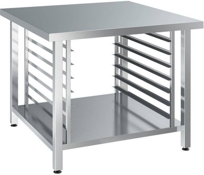 Подставка Assum ППК-9/9 используется на предприятиях общественного питания, торговли и пищевых производствах для размещения установки пароконвектоматов. Материал каркаса - высококачественная нержавеющая сталь AISI 430 (труба 40х40 мм), материал столешницы, направляющих и обвязки - высококачественная нержавеющая сталь AISI 430, материал опор ножек – пластик.