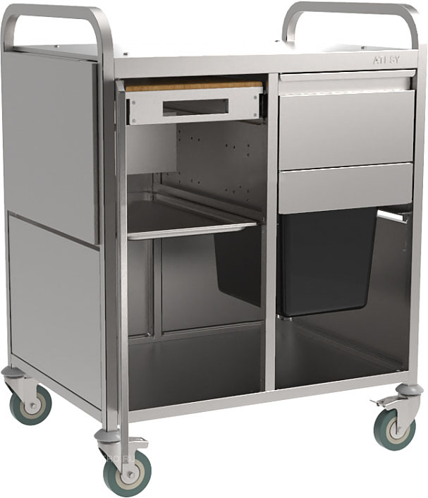 Подставка под гриль-шашлычницу ATESY ПГШ-810-01 используется на предприятиях общественного питания, торговли и пищевых производствах для установки гриля-шашлычницы и организации передвижного рабочего места. Модель оборудована направляющими для гастроемкостей и 4 поворотными колесами, 2 из них имеют тормоза. Материал конструкции - легированная сталь, стойки - труба квадратного сечения.