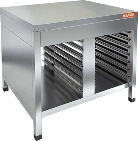 Открытая подставка HICOLD НППКР используется на предприятиях общественного питания, торговли и пищевых производствах для установки пароконвектомата Rational.